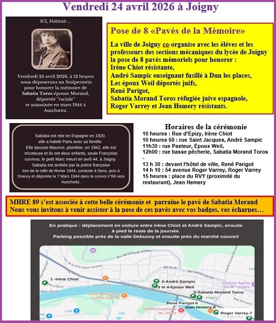 Des pavés de la Mémoire à JoignyLire la suite de «Des pavés de la Mémoire à Joigny» 13 avril, par ivan