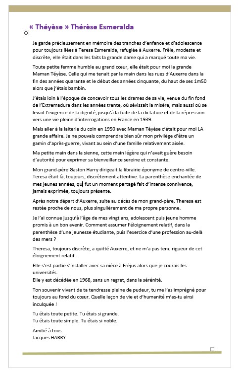 Magnifique hommage de Jacques Harry à « Théyèse Esméralda »sa grande Maman